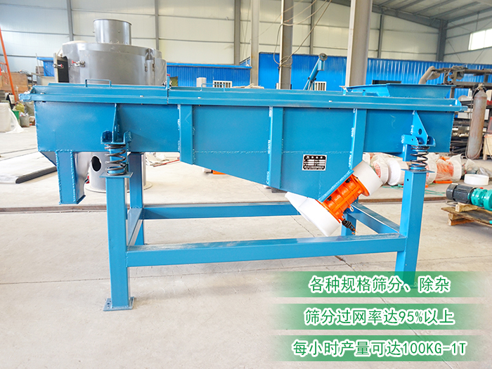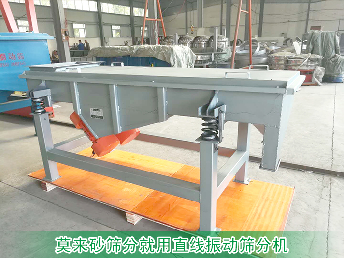 大漢機(jī)械生產(chǎn)的直線振動(dòng)篩分機(jī)利用振動(dòng)電機(jī)作為激振源,使莫來砂在篩網(wǎng)上被拋起,同時(shí)向前做直線運(yùn)動(dòng),莫來砂在給料機(jī)上均勻地進(jìn)入篩分機(jī)的進(jìn)料口,通過多層的篩網(wǎng)產(chǎn)生數(shù)種規(guī)格的莫來砂,分別從各自的出口排出。以達(dá)到篩分目的。