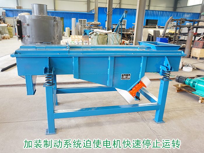 篩分機(jī)停機(jī)時(shí)因?yàn)閼T性會(huì)在某個(gè)特定時(shí)間段振動(dòng)頻率與篩機(jī)本身頻率一致從而發(fā)生共振,可在篩分機(jī)上加裝制動(dòng)系統(tǒng)在停車時(shí)給振動(dòng)電機(jī)加入反向電流,迫使電機(jī)快速停止運(yùn)轉(zhuǎn),使振動(dòng)頻率跳過篩機(jī)自身固有振動(dòng)頻率從而達(dá)到防止共振的目的。