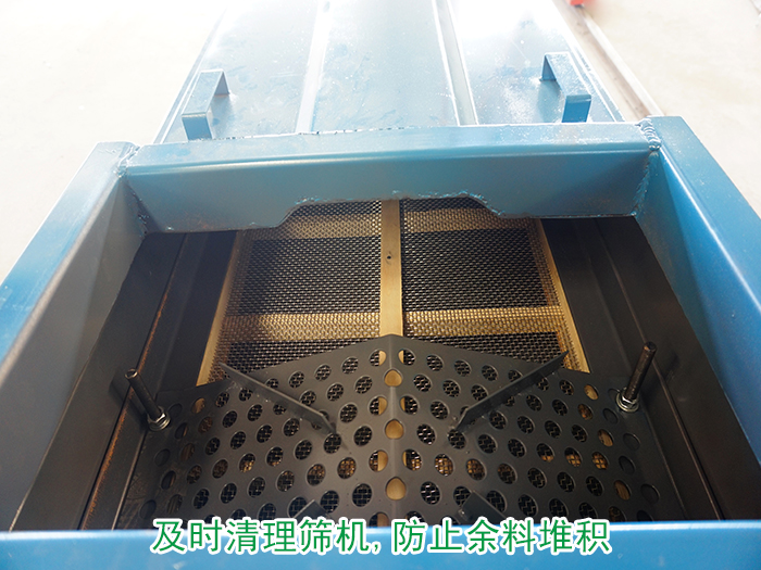 在篩分機(jī)使用過程中需要?jiǎng)蛩龠M(jìn)料不能使設(shè)備過載篩分,篩機(jī)內(nèi)部也需要時(shí)常清理,防止余料堆積,如果過載篩分也會(huì)影響篩機(jī)的振動(dòng)頻率,導(dǎo)致共振的發(fā)生。